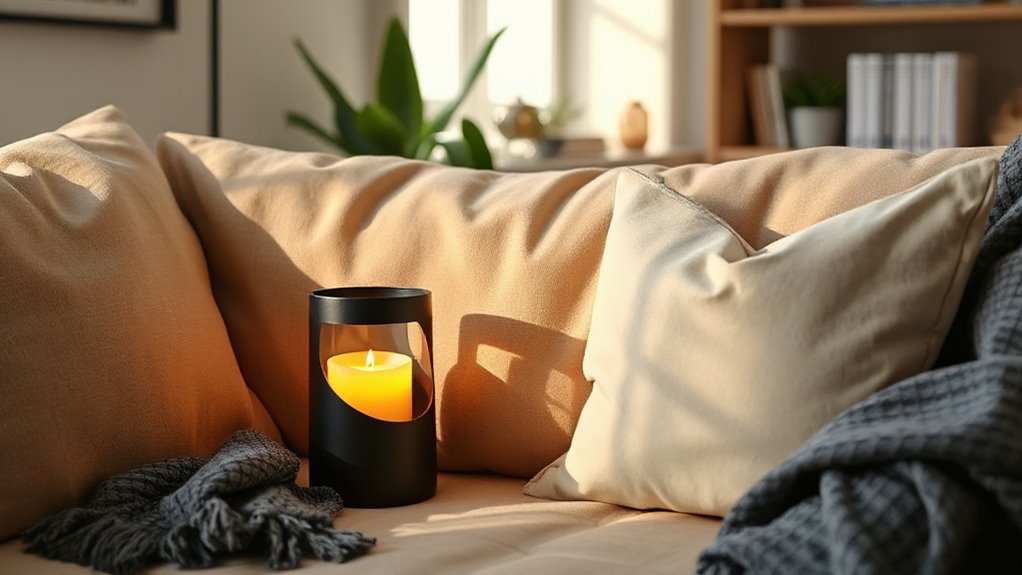 Matching the design of your candle warmer lamp to your home decor is essential for creating a cohesive and inviting space. I recommend considering your overall style—whether modern, vintage, or minimalist—to find a lamp that complements it. Pay attention to the size and shape of the lampshade and base to ensure they fit well with your furniture and room dimensions. The color and finish, like metallic, matte, or wood accents, should coordinate with your existing color scheme. Also, check that the lamp’s height and any adjustable features suit your candles for both effective melting and visual harmony. Finally, choose a design with compatible lighting options, such as dimmable or decorative bulbs, to enhance your room’s ambiance seamlessly.