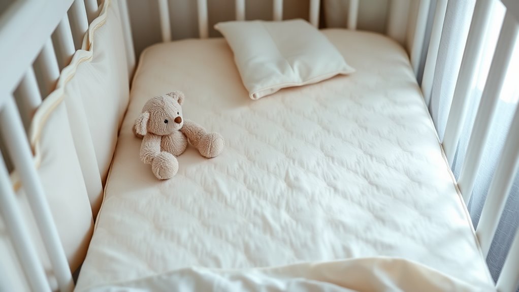 Waterproof crib mattresses can be safer for infants because they’re easier to clean and help prevent mold and bacteria buildup. I always say, a clean slate is key to safety. They reduce the risk of allergens and keep your baby dry, which is vital for comfort and health. Just make sure the waterproof cover is breathable and free from harmful chemicals, so your little one stays safe and cozy.