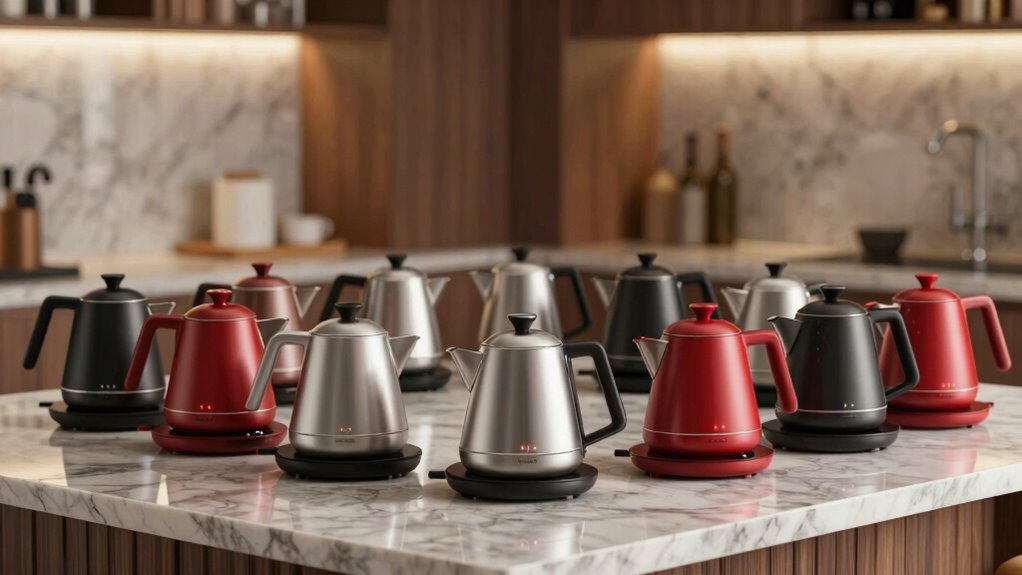 Imagine a busy tea station where each kettle hums softly, ready to pour steaming water into your favorite cup. With the right electric kettle, you’ll see steam rise like gentle clouds, inviting warmth and comfort. Whether you prefer precise temperature controls or sleek glass designs, these kettles turn everyday tea time into a moment of bliss. Choose wisely, and let every sip feel like a cozy, inviting embrace—your perfect tea station awaits.