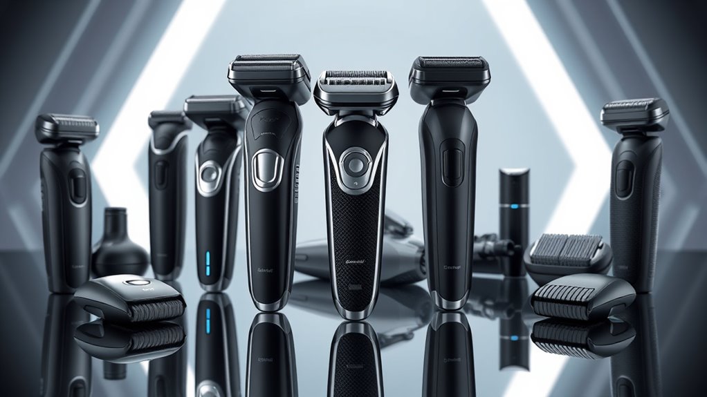 If you want a smooth, hassle-free shave in 2025, I recommend checking out versatile electric shavers like 5-in-1 models, waterproof foil shavers, and those with LCD displays for easy monitoring. Features like flexible heads, long battery life, and quick USB-C charging make grooming more comfortable and efficient. Think about durability and maintenance too, so your shaver stays in top shape over time. Keep going, and you’ll discover the best options for your needs.