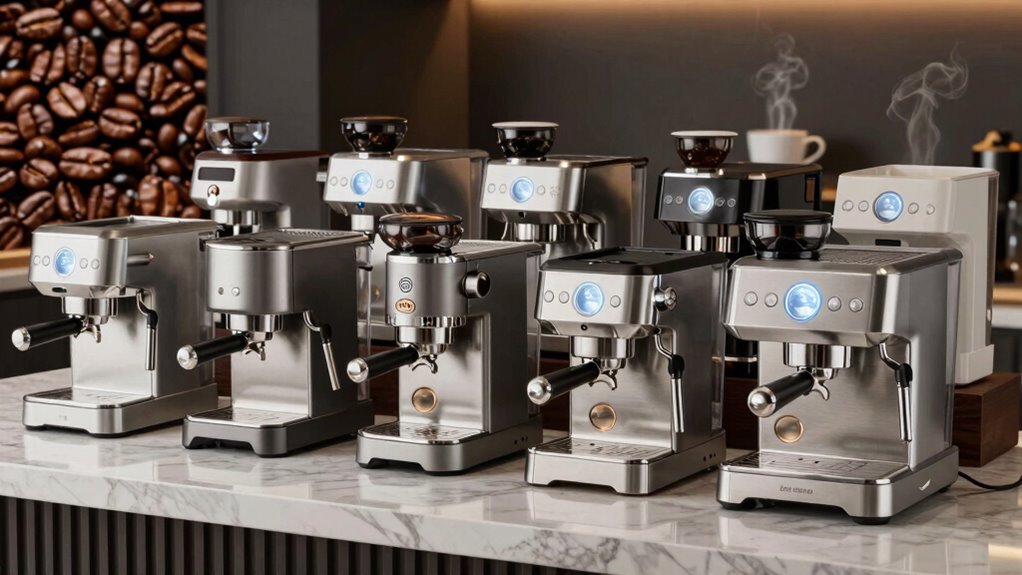 I’ve tested and selected the top 15 espresso machines for 2026 that baristas rave about, focusing on compact design, high-pressure pumps, and user-friendly features. These machines include versatile options with built-in milk frothers, precise temperature controls, and durable materials like stainless steel. Whether you’re after a simple espresso or want to craft latte art, these picks deliver professional results. Keep going to discover the best options to elevate your coffee game.