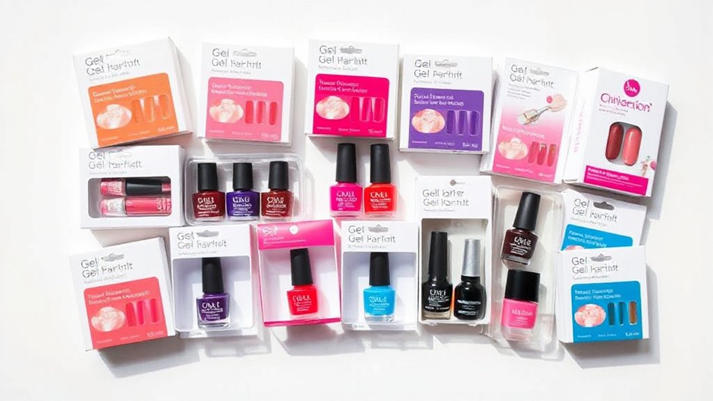 Choosing a gel nail kit that’s easy to use can make all the difference for beginners. Look for kits with clear, step-by-step instructions and labeled tools to simplify the process. Kits that include essential components like base coats, top coats, and automatic-sensor curing lamps help reduce complexity. Pre-measured polish bottles and minimal tools make application more straightforward, lowering the learning curve. User-friendly UV or LED lamps with multiple curing modes and automatic on/off sensors streamline the curing process, saving time and effort. Additionally, extensive guidance or tutorials can boost your confidence, helping you learn proper nail prep, application, and curing techniques. Prioritizing ease of use ensures a smoother, more enjoyable experience as you master your gel manicure skills.