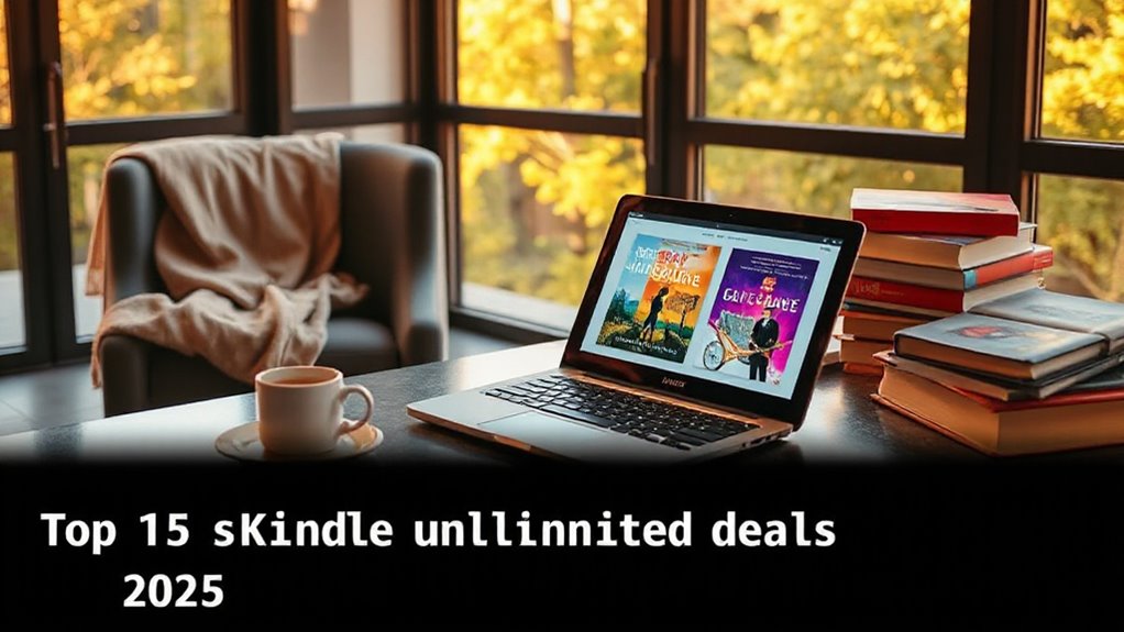 If you’re like me, finding the perfect Kindle Unlimited deal can feel overwhelming, but it’s worth it. Imagine discovering a enthralling thriller that keeps you up all night, just like Sarah did last month. With these top 15 deals, you’ll open endless stories and recipes without breaking the bank. Don’t miss out—your next favorite book or delicious recipe is just a click away. Happy reading!