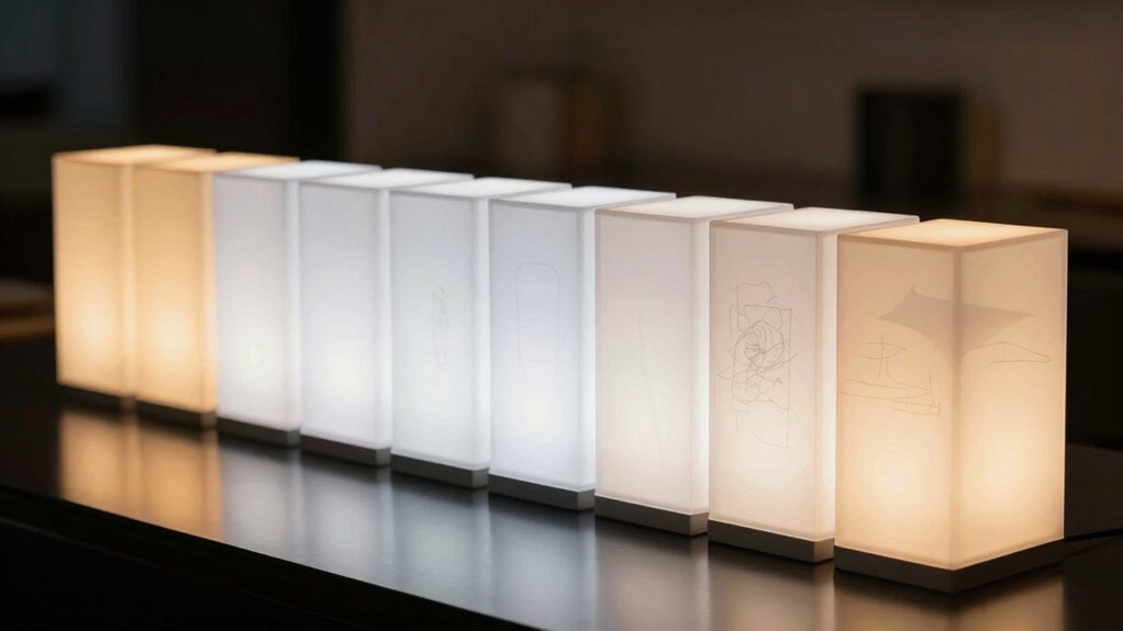 Think of choosing an energy-efficient light box like picking a sleek, fuel-saving car. In 2026, I’d go for the LuminaEco, which uses advanced LED technology to shine brightly while sipping minimal power. It’s like having a lantern that doesn’t drain your energy reserve. This model balances brightness and eco-friendliness perfectly, helping you save on electricity bills while illuminating your art with a gentle, consistent glow.