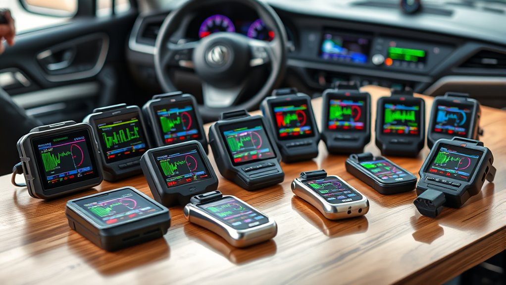 If you’re searching for the 12 best OBD2 scanners in 2025, I’ve got you covered. From basic models like the ANCEL AD310 to advanced tools like the BlueDriver Bluetooth Pro, these devices support wide vehicle compatibility, multiple protocols, and offer features like live data, reset functions, and bidirectional controls. Whether you’re a DIY enthusiast or a professional, you’ll find options that fit your needs and budget. Keep going to discover all the top picks and what sets them apart.