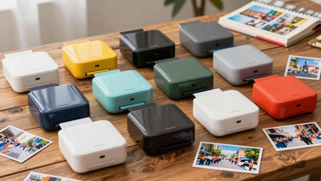 Imagine capturing a moment and having the power to print it instantly—that’s how battery life varies among these printers. Some models last for several hours on a single charge, ideal for long adventures, while others need frequent recharging. Charging options differ too; USB-C is common, making it easy to juice up on the go, but a few still rely on proprietary chargers. I always look for versatile options to keep my memories flowing effortlessly.
