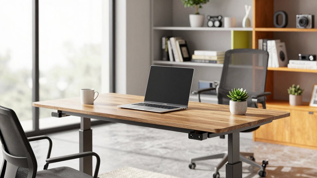Choosing a standing desk with the right adjustable height range is essential for ensuring comfort and ergonomic support. A good range, typically from about 27 to 50 inches, allows users of different heights to find a comfortable position. When the height adjustment is wide, it’s easier to switch between sitting and standing, promoting movement and reducing static postures. It’s important that the specific limits match your ergonomic needs to prevent strain or discomfort. Desks with a limited range might not accommodate taller or shorter individuals properly, limiting their ergonomic benefits. A flexible height range encourages seamless changeover, making it easier to stay active during study sessions. Ultimately, selecting a desk with an appropriate adjustable height range helps maintain comfort and supports long-term health.