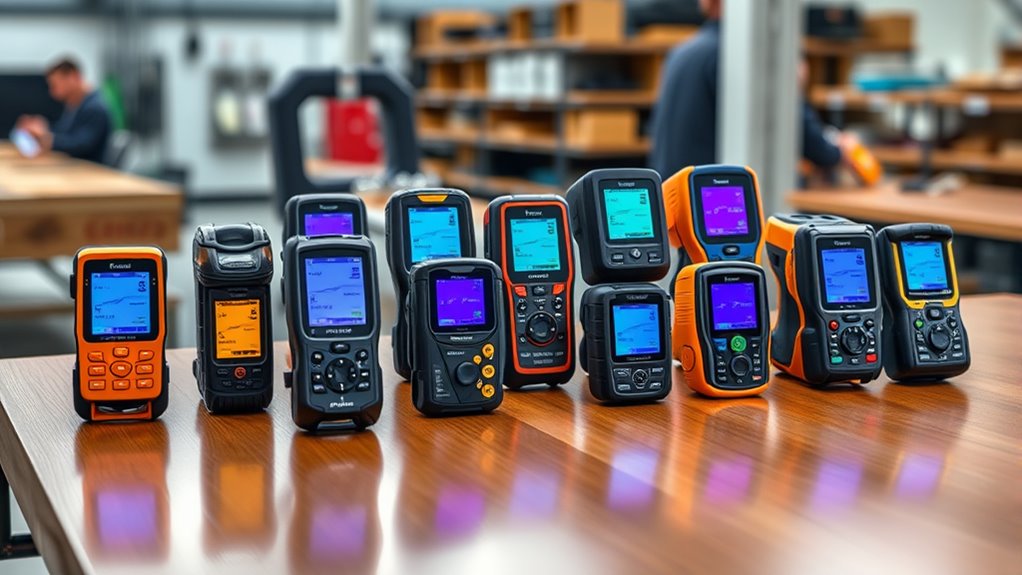 If you’re looking for the 14 best stud finders that make hanging easy and accurate in 2025, I’ve found models with advanced sensors, clear LCD displays, and multi-sensing modes that detect studs, wires, and pipes effortlessly. Devices like the Franklin ProSensor M210, DEWALT DW0100, and Walabot DIY 2 stand out for their precision and ease of use. To choose the right one for your needs, consider detection depth, safety features, and user interface — and you’ll discover all the details if you keep going.