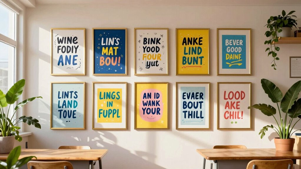 Think of Mother Earth as the ultimate classroom; yes, there are eco-friendly options for teacher quote wall decor. I choose prints made from recycled materials or those printed with soy or vegetable-based inks. Additionally, I opt for sustainably sourced wood or bamboo frames. These choices help reduce our carbon footprint and show students the importance of caring for our planet, all while inspiring them with meaningful quotes.