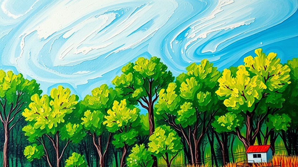 Bob Ross teaches that mistakes in painting aren’t disasters but “happy accidents” you can turn into something beautiful. Instead of stressing over imperfections, embrace them as part of your creative journey. Trust your instincts, experiment freely, and see every error as an opportunity to add character and charm to your work. By adopting this mindset, you’ll find joy in the process and create unique artworks. Keep exploring, and you’ll discover even more ways to make mistakes work for you.