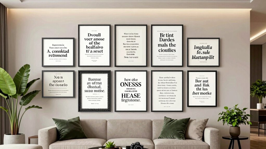 When you combine thoughtful typography styles with carefully selected material choices, your quote becomes more than just words on a wall. It transforms into a piece of art that reflects your personality and inspires without sounding like a schoolroom lesson. The key is to keep things balanced—use fonts that convey the right mood, and materials that enhance the overall aesthetic. With some attention to detail, your quote can serve as a focal point, adding character and warmth to your space, all while maintaining a sophisticated, contemporary look. This approach assures your wall decor feels intentional, stylish, and uniquely you.