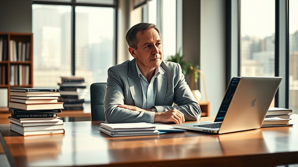 Jack Schwager’s experiences show that failures and successes are essential for shaping your trading psychology. Each setback helps build resilience, teaching you to analyze mistakes without emotional turmoil. Embracing wins and losses alike sharpens your strategies and strengthens emotional stability. Developing this mindset allows you to manage risks better and stay focused during volatile periods. To learn how Schwager turned setbacks into growth, keep exploring the ways mental toughness can boost your trading journey.