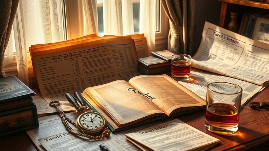 Your awareness of market superstition and investor psychology in October shapes how you approach investing. Twain’s humorous take highlights how these beliefs influence investor behavior, making you more cautious or anxious during this month. Recognizing these psychological cues lets you avoid panic-driven decisions, helping you stay rational. By understanding this, you can better navigate October’s peculiar market trends and maintain a steady, disciplined investment approach.