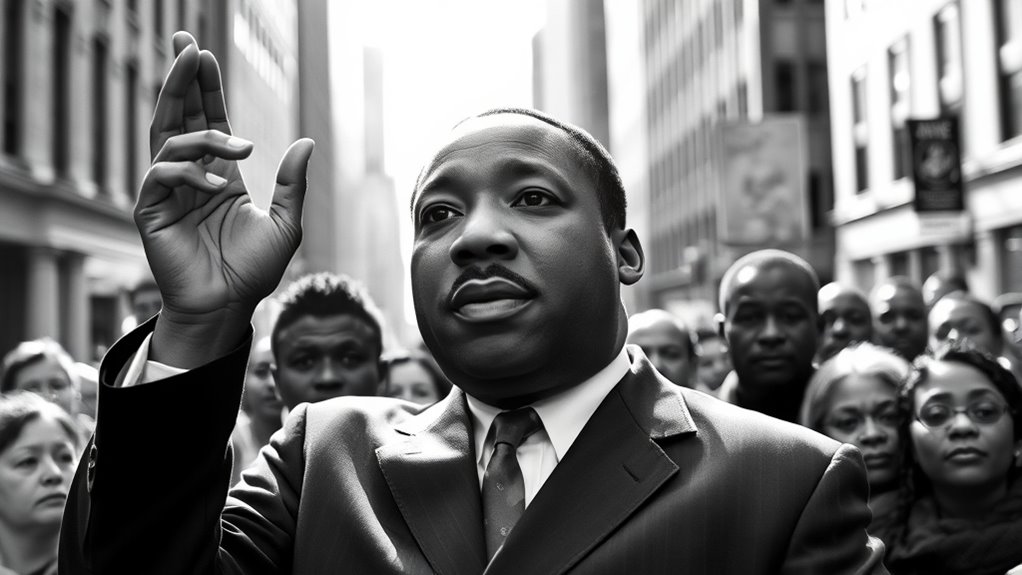 You’re inspired by Martin Luther King Jr.’s faith motivation and childhood influences that shaped his commitment to justice. His deep religious faith and sermons from childhood instilled a sense of moral duty, pushing him to fight for equality. Seeing racial injustice firsthand and being raised in a loving, faith-driven environment motivated him to lead nonviolent protests, believing that doing what’s right is always worth fighting for.