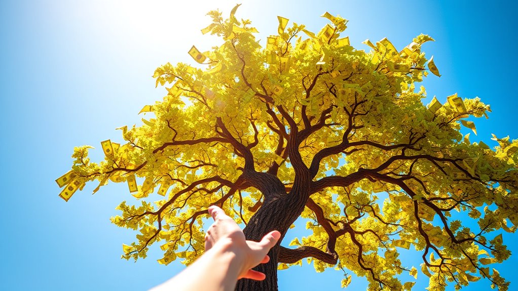To make your money grow like a tree of persistence, you need to overcome the habit of procrastination. Start small with savings and automate your transfers to build consistency. Invest early and diversify to maximize growth over time. Avoid fear by setting clear goals and reviewing your finances regularly. Remember, patience and persistence turn efforts into long-term wealth. Keep going, and you’ll discover more ways to nurture your financial garden.