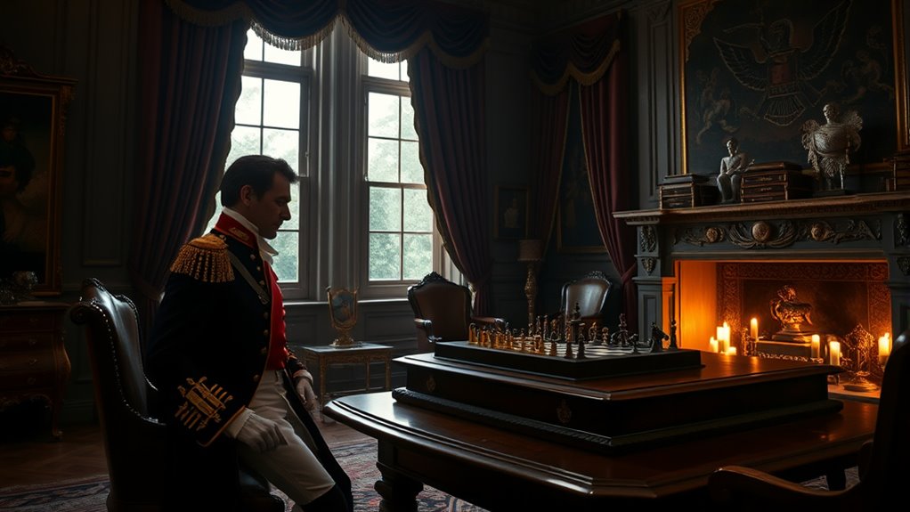 You might wonder if Napoleon ever felt regret over his military decisions. While he rarely admitted regret, history shows he made strategic errors, like the disastrous invasion of Russia. These regretful decisions led to significant losses and arguably altered his fate. Despite his confidence, some of his choices suggest he was aware of mistakes, but he rarely let regret influence his resolve to pursue his goals.
