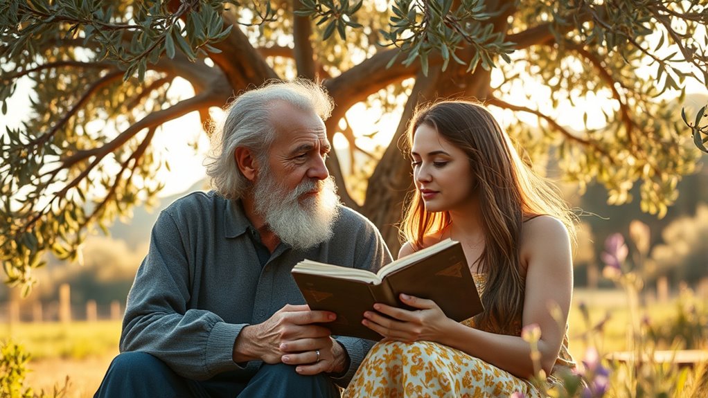 Love has a transformative power that can turn anyone into a poet, a truth that Plato eloquently explores in his philosophy. When you experience love, it’s as if a hidden well of romantic inspiration opens within you, fueling a poetic transformation that elevates your very being. This isn’t merely about writing verses or reciting poetic lines; it’s about how love reshapes your perception of the world and your place within it. Plato believed that love acts as a catalyst, awakening your deepest desires and inspiring you to seek higher truths. As you fall into love’s embrace, you begin to see beauty in everything—whether it’s a simple smile, a gentle touch, or a fleeting moment of connection. Love, in this sense, becomes a muse that stirs your soul, urging you to express feelings that words alone can scarcely contain. It’s through this process that you discover the poetic transformation—the way love transforms ordinary experiences into profound expressions of emotion and understanding.
