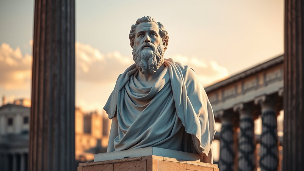 Have you ever wondered how a philosopher like Plato views power? If you’re curious about leadership and its ethical dimensions, understanding Plato’s perspective can offer profound insights. For Plato, power isn’t just about control or dominance; it’s about moral responsibility. When you hold power, you’re entrusted with a duty to serve the greater good, not just personal gain. This emphasis on moral responsibility shapes how he believes leaders should act. Power, in his view, demands a sense of accountability and integrity—qualities that elevate a ruler beyond mere authority. It’s not enough to wield influence; you must do so ethically, with a firm commitment to justice and virtue. This is where leadership ethics come into play. For Plato, true leadership stems from wisdom and a deep understanding of what’s right. Leaders should be philosophers at heart—those who seek truth and prioritize the well-being of their society over personal ambition. When you think about power through this lens, it becomes clear that Plato advocates for a kind of leadership rooted in moral responsibility. Leaders are guardians of justice, tasked with guiding their communities toward harmony and the common good. They are not rulers for self-interest but stewards who must balance authority with humility and ethical awareness. In practical terms, this means that any exercise of power must be scrutinized through the lens of leadership ethics. Are your actions just? Do they promote fairness? Are you acting with virtue? These questions are central to Plato’s vision of responsible leadership. He warns against the corrupting influence of unchecked power, which can lead to tyranny and moral decay. Instead, he champions the idea that those who govern should be guided by knowledge, virtue, and a sense of moral responsibility. Power, in this philosophy, is a trust—one that must be exercised with wisdom and ethical integrity. You, as a leader or aspiring leader, should constantly reflect on how your decisions impact others. Are you upholding justice? Are you acting with moral responsibility? These considerations go hand in hand with leadership ethics, which ultimately define the measure of a true ruler. Plato’s teachings remind you that power is not an end but a means to serve justice and foster the common good. When wielded responsibly, it becomes a force for positive change—something that only the morally conscious can truly do. Recognizing the importance of ethical leadership can help prevent the destructive effects of unchecked authority and promote societal harmony.