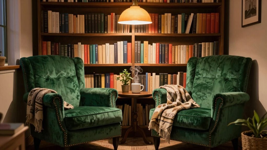 You can’t afford to choose a bulky chair that swallows your small room! Instead, opt for space-saving designs and compact furniture that whisper “cozy” instead of “crowded.” Look for slim profiles, foldable or multi-functional options, and vertical storage. These choices maximize your space, making your room feel larger and inviting without sacrificing comfort. With the right small-space chair, you’ll create a perfect reading nook that feels open and charming.