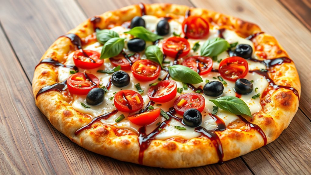 Once you’ve nailed down your cheese varieties and crust style, it’s all about layering your toppings thoughtfully. Go for a harmonious mix of flavors—fresh herbs, tangy sauces, savory meats, or crisp vegetables—each adding its own personality to the pizza. Keep in mind that the way you combine these elements impacts the final taste and texture, so don’t be afraid to try unconventional pairings. The key to creating your perfect pizza is experimenting with different cheese varieties and crust styles until you find what resonates with your palate. With a little creativity and attention to detail, you can craft a pizza that’s not only delicious but uniquely yours.