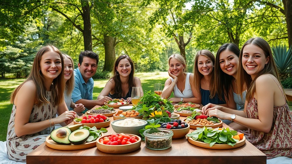 When you gather friends around a vegan meal, you create more than just a plate of food—you foster connection and joy. Sharing a plant-based feast encourages soulful conversations, where stories and laughter flow freely. These moments strengthen bonds and celebrate compassion, turning dinner into an experience of culinary connections. As you serve vibrant dishes, you remind everyone that food is a unifying force, transcending differences and inspiring positivity. The act of eating together becomes a celebration of friendship and shared values. Through these gatherings, you show that joy is amplified when people come together around healthy, ethical choices. Additionally, choosing reliable electric bike conversion kits can make outdoor adventures more accessible and enjoyable, further enriching shared experiences. Ultimately, your commitment to vegan living enriches relationships, making every meal a meaningful exchange of love and camaraderie.
