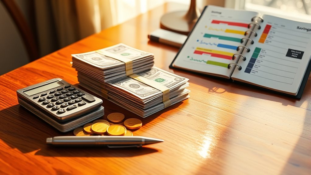 Warren Buffett’s spending rule suggests you should only spend what remains after you prioritize saving first. This means setting aside a portion of your income early on, before covering expenses or discretionary spending. By doing so, you guarantee saving becomes a non-negotiable habit, helping you control your finances and avoid impulsive purchases. Following this approach builds discipline and paves the way for long-term wealth growth. Keep exploring to discover how to make this rule work best for you.