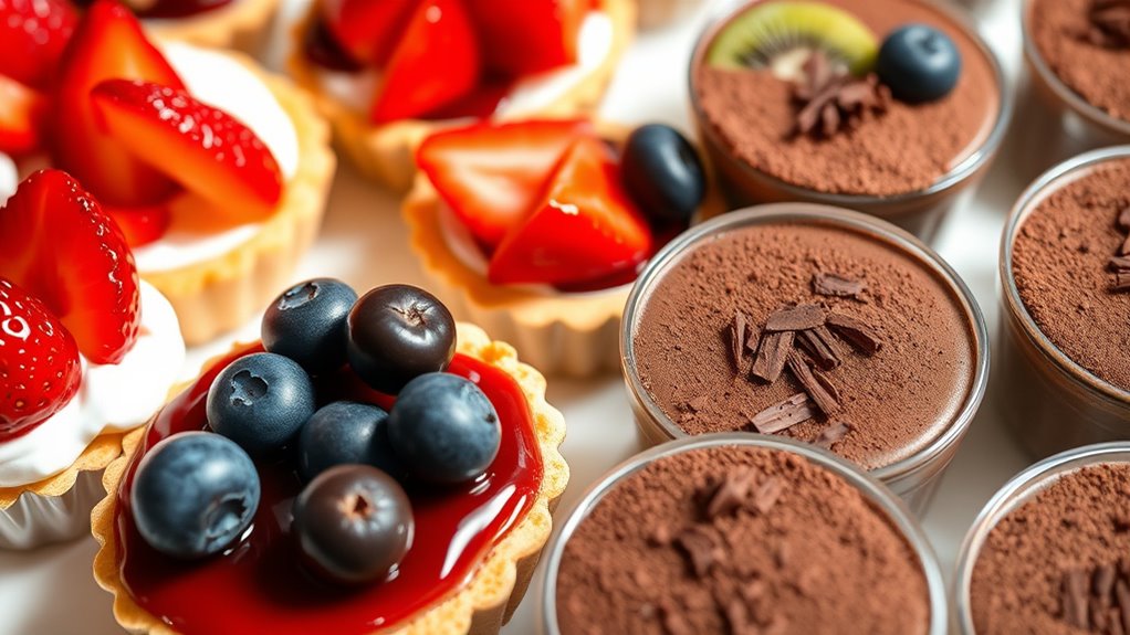 Choosing between fruity desserts and chocolate depends on what you’re craving. If you want something light, nutritious, and rejuvenating, fruity desserts with fresh or cooked fruit are perfect—they offer vitamins, fiber, and natural sweetness. On the other hand, if you seek a rich, indulgent treat, chocolate provides deep, velvety flavors and mood-boosting benefits. Both options can fit into a balanced diet. To discover which suits your mood best, explore the unique flavors and benefits each offers.